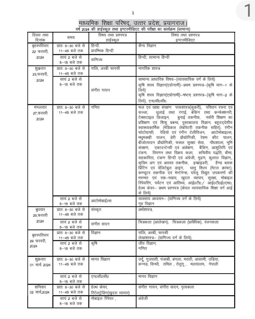 प्रयागराज: यूपी बोर्ड ने जारी किया 2024 का परीक्षा शेड्यूल