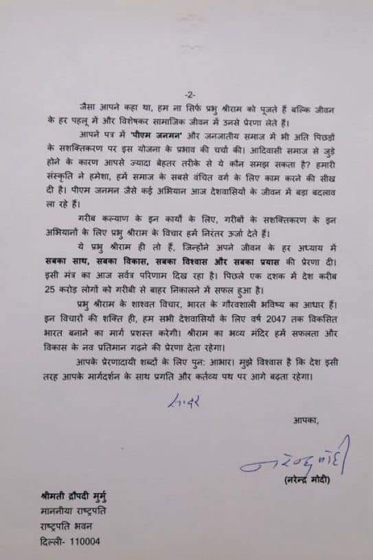 PM मोदी ने प्राण प्रतिष्ठा के बाद राष्ट्रपति को लिखा पत्र